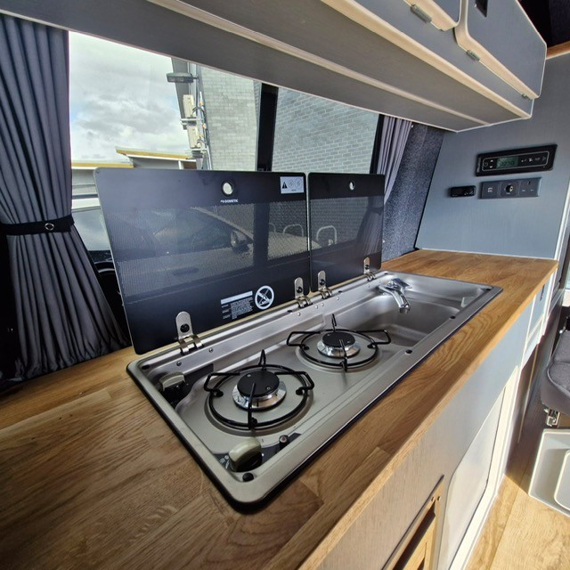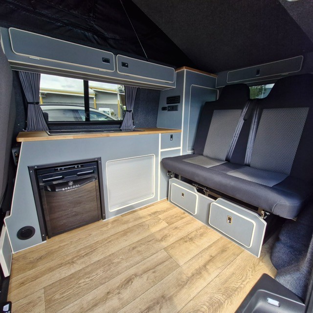 The Balmoral Deluxe Conversion takes campervan luxury to the next level. Featuring a fully lined and insulated interior, M1 VOSA tested Roof and Bed system, and hardwood ply flooring covered with high-grade non-slip vinyl, it offers a stylish and comfortable space. The side kitchen units, overhead & rear cupboards, and rear storage cupboard provide ample storage options, all with convenient tambour space-saving doors. The rock & roll bed with matching upholstery and seatbelts ensures a comfortable and safe travel experience. With options for an elevating roof or high top roof, as well as features like a gas hob, sink, fridge/freezer, power management system, and more, the Balmoral Deluxe Conversion offers convenience and functionality. Complete with insurance approval and a 2-year warranty, it’s a top choice for those seeking a deluxe campervan conversion experience.