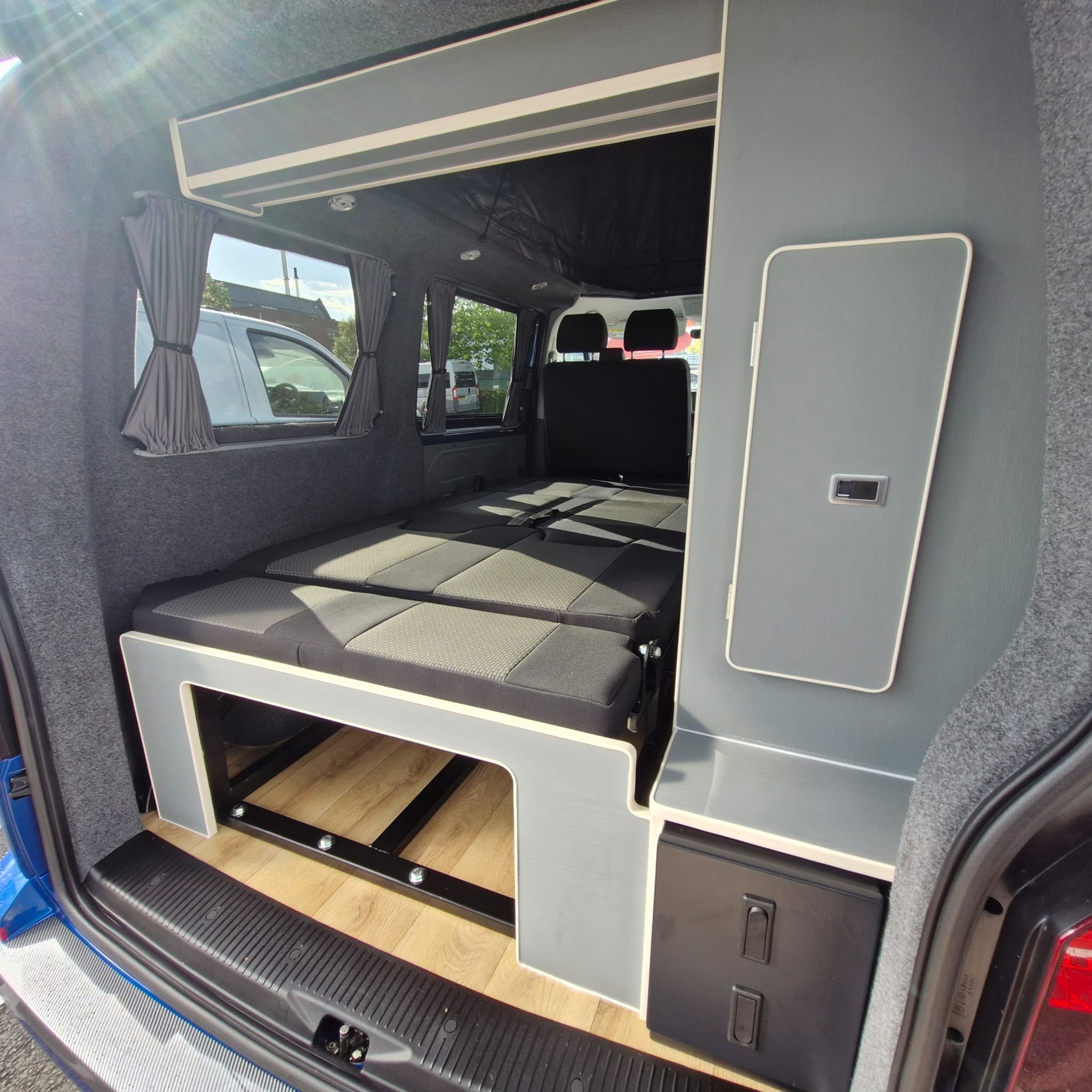 The RIB bed gives you a higher load space at the rear of your campervan and has a folding operating system. With 6ft in length (1860mm), it is the shortest of our beds and is available in various widths.