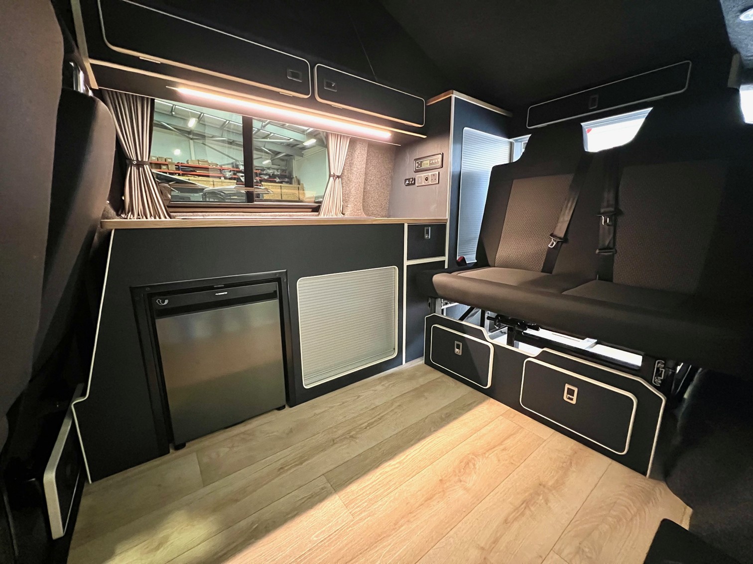 Full conversion includes a bespoke interior, rear cupboards, kitchen, sink, hobs, fridge.
